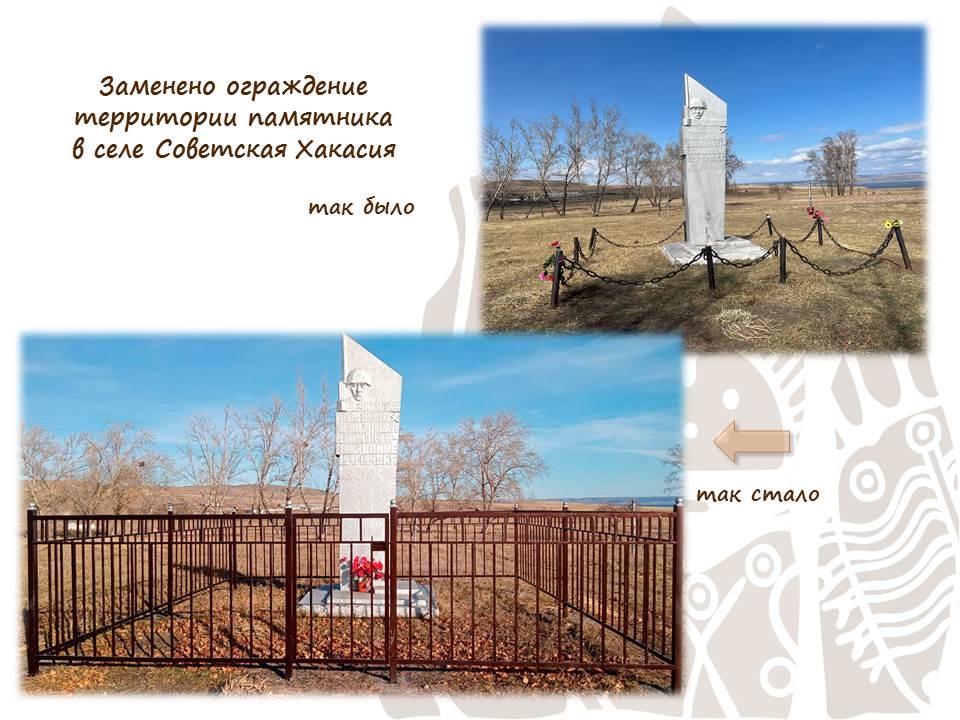 🔶 Кроме того, в селе Советская Хакасия было заменено ограждение памятника воинам-землякам, погибшим в Великой Отечественной войне.